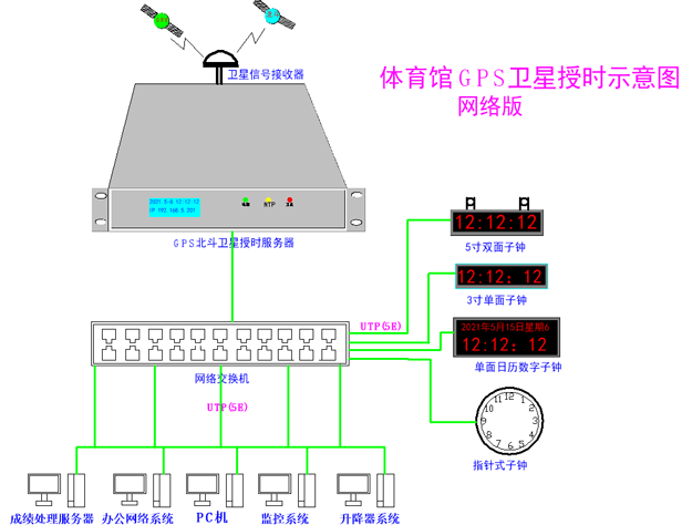 標(biāo)準(zhǔn)的時(shí)鐘同步系統(tǒng)是體育場(chǎng)館智能化建設(shè)的重要組成部分之一,其主要作用是為觀眾及場(chǎng)館工作人員、運(yùn)動(dòng)人員提供準(zhǔn)確的時(shí)間服務(wù),同時(shí)也為計(jì)算機(jī)系統(tǒng)及其它弱電子系統(tǒng)提供標(biāo)準(zhǔn)的時(shí)間源。使各系統(tǒng)的時(shí)間集中同步,在整個(gè)體育場(chǎng)館系統(tǒng)中設(shè)備時(shí)間的集中統(tǒng)一,標(biāo)準(zhǔn);為體育賽事的順利進(jìn)行,提供一個(gè)有序的比賽秩序。